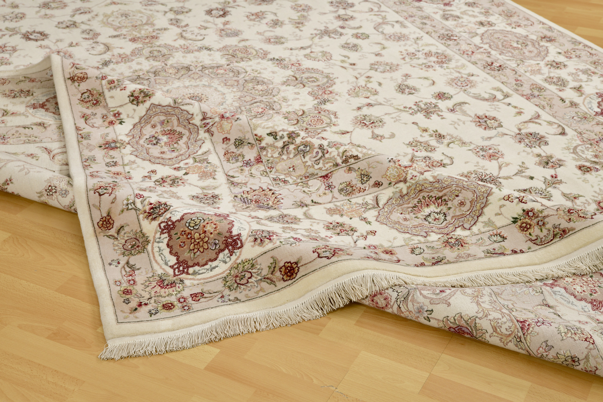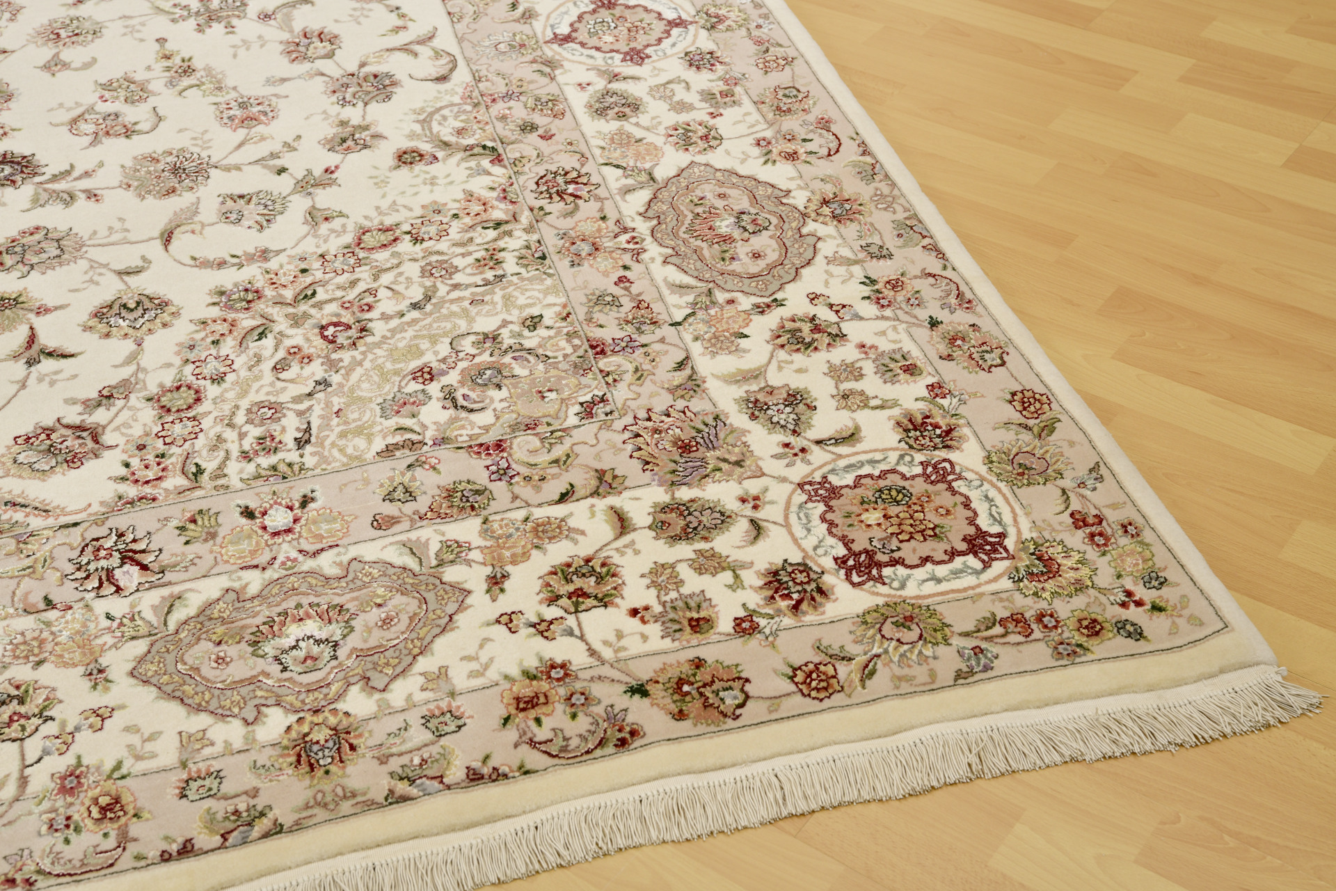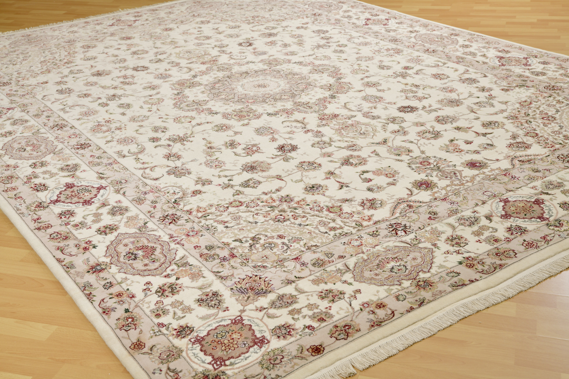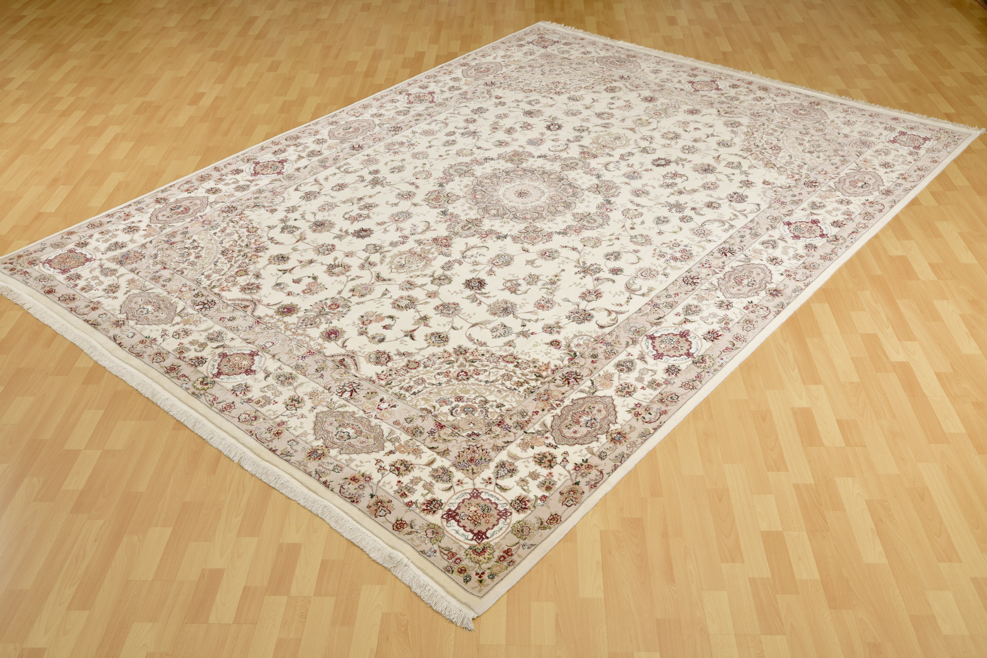 Estas alfombras de lana y seda son muy fuertes y resistentes poseen gran cantidad de lana de primera calidad. La gran mayoría están tejidas con el 70% de lana y el 30% de seda. Sus diseños son Persas, especialmente de TABRIZ, capital al noroeste de Irán de dónde toman su nombre.