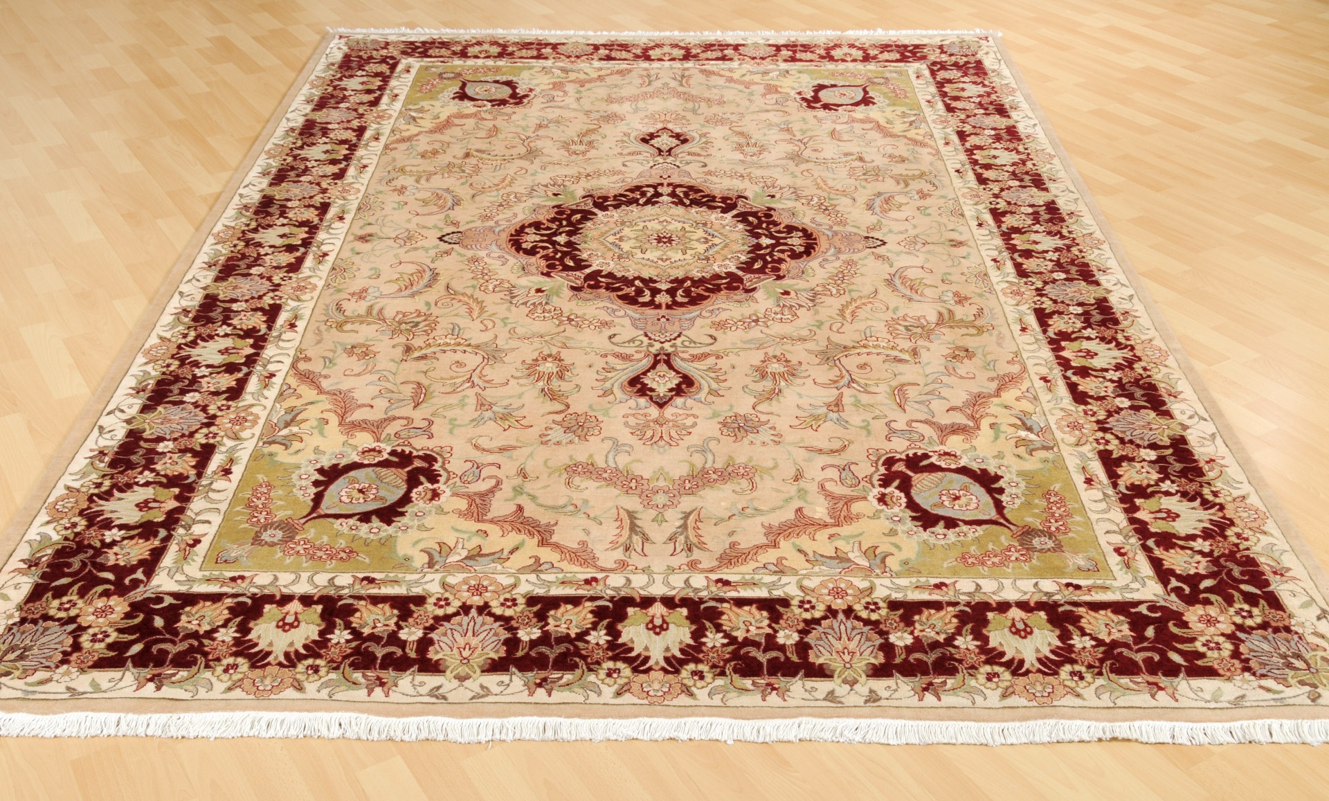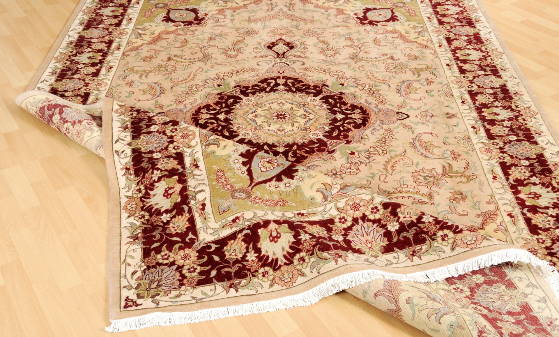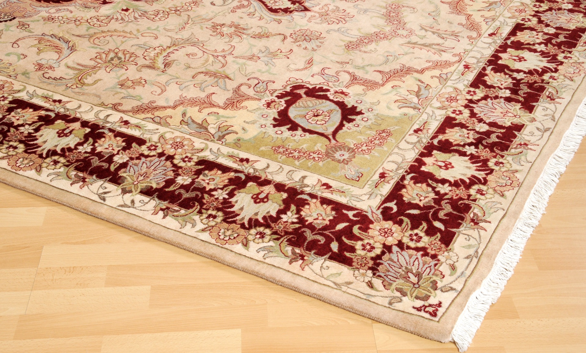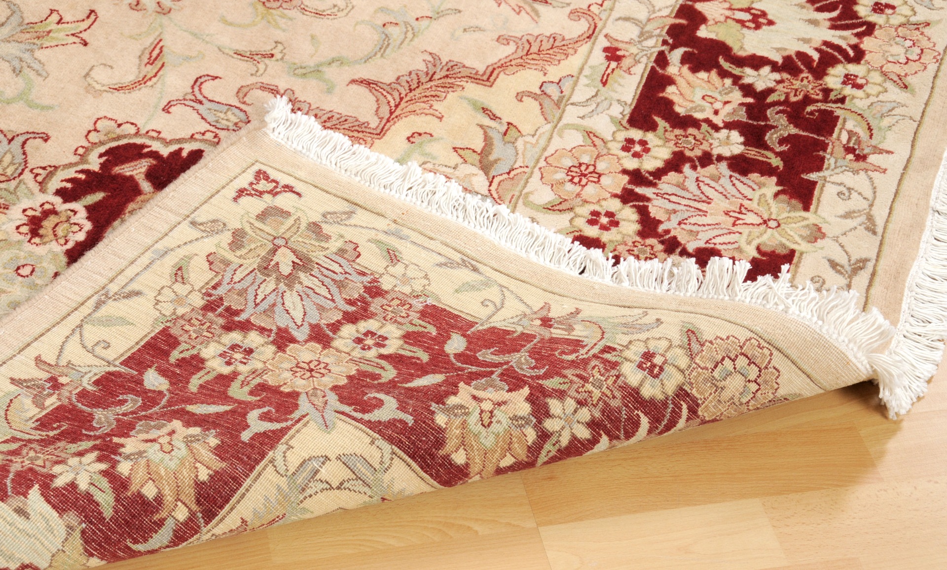 Las alfombras DOBLE NUDO están anudadas en a mano en Pakistán. Son muy fuertes y resistentes ya que poseen una gran cantidad de lana de primera calidad. Su tacto es similar a la seda. La gran mayoría están tejidas con el 80% de lana y el 20% de seda. Algunas de estas alfombras, tienen un solo medallón central. Predominan los dibujos florales y los tonos beige, rojos, rosas, salmón y dorados creando un hermoso contraste.
