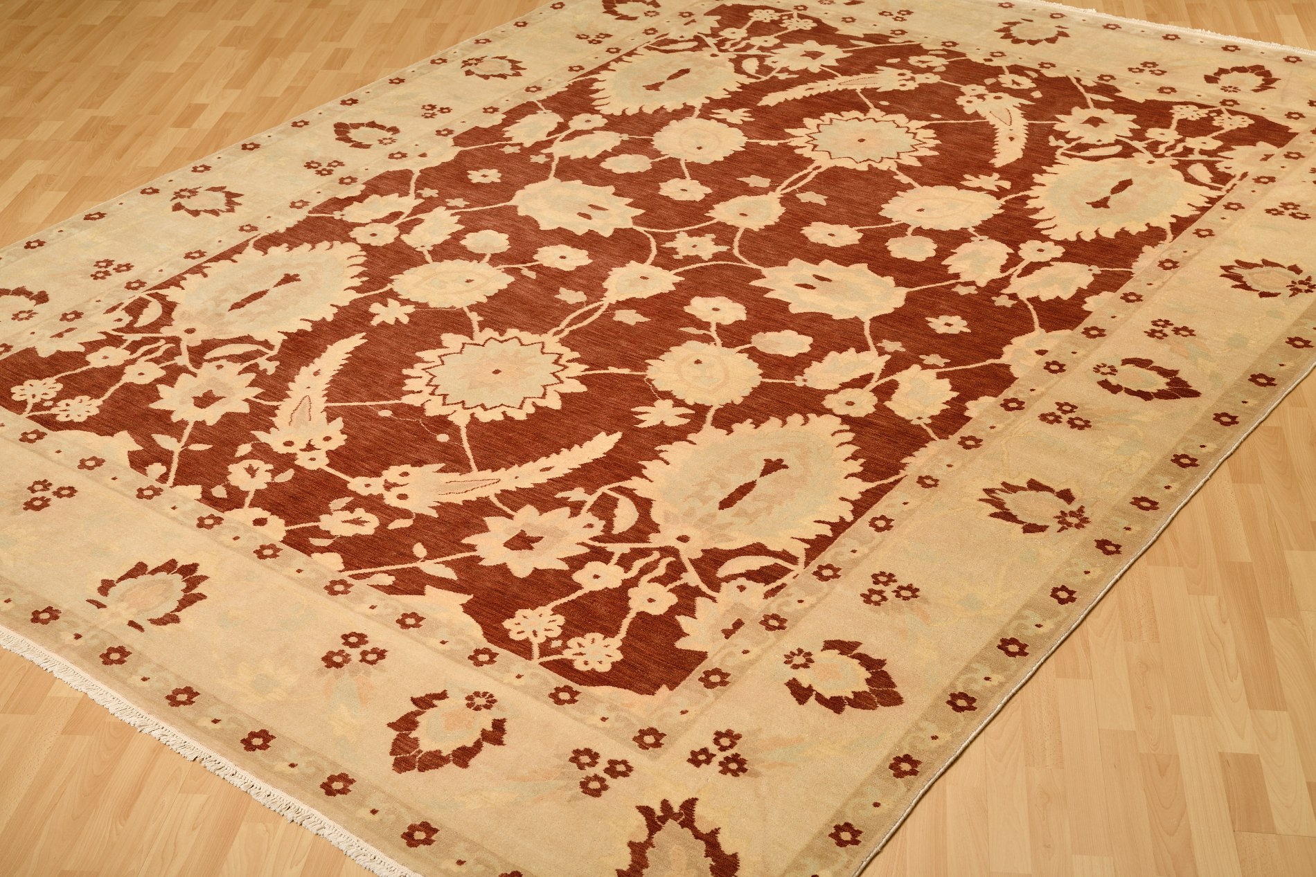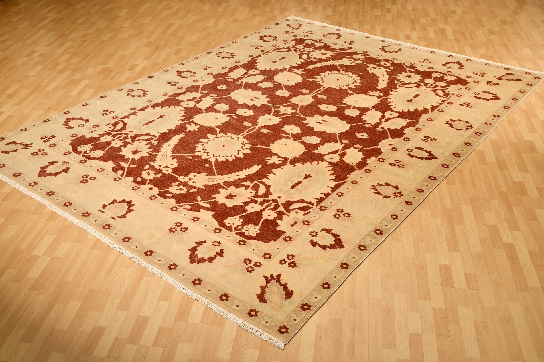 Destacan los dibujos florales y los geométricos en las piezas modernas y gran variedad de colores y tamaños. Los tonos predominantes son beige, rojos, granates y dorados.