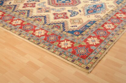 KAZAK es, en origen, un nombre tribal, ahora una ciudad, un río y un distrito en el extremo en el oeste de Azerbaiján, los Caucasos. En las alfombras de KAZAK se observan una amplia gama de tamaños con lanas brillantes y diseños vigorosos. Los tejedores eran los nómadas de Tirkic, que vinieron a la región en el momento de la gran migración. Estas alfombras se anudan a mano en PAKISTÁN. Su decoración se inspira en motivos geométricos rusos y la lana se tinta con texturas vegetales naturales. Son muy resistentes y de vivos colores. Se lavan a la piedra para otorgarles ese especial toque satinado que las caracteriza.