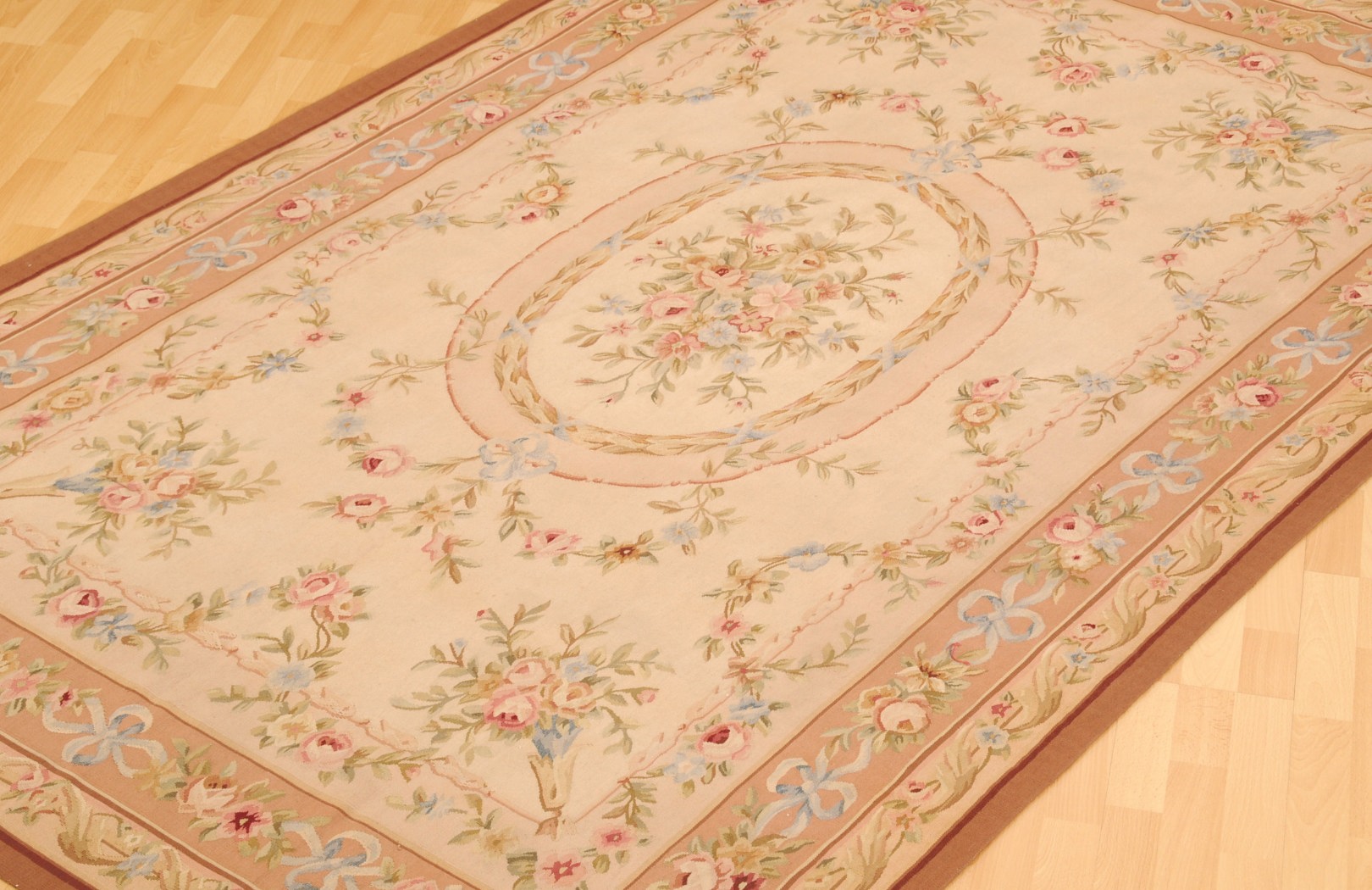 Las alfombras de lana Aubusson se empezaron a tejer a mano en la ciudad de Aubusson de donde toman su nombre. Todo empezó en un taller pequeño en 1745. Las alfombras hechas a mano entre 1780 y 1792 se dice que eran copias de dibujos turcos, y que fueron evolucionando en sus diseños más parecidos a las alfombras de lana Savonneire. En la actualidad hay muy poca producción en Francia, pero los estilos de Savonneire Aubusson se tejen a mano en países como India, China y Pakistán siendo cada vez menor la producción de alfombras de lana Aubusson debido a sus altos costes.